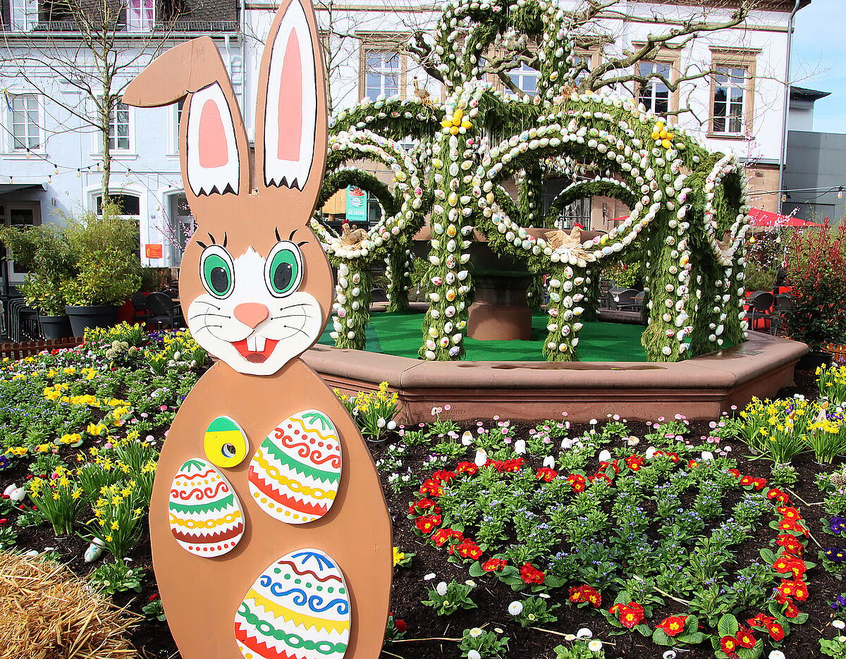 Der Rathausplatz ist bunt geschmückt und lokale Unternehmen und Schausteller machen die Zeit um Ostern für jeden Besucher zu etwas Besonderem.