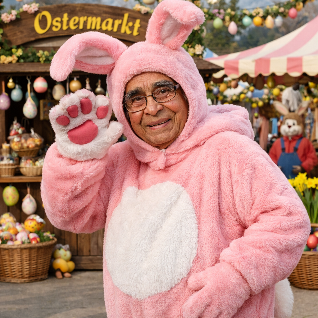 Dieses Jahr freuen wir uns ganz besonders auf unseren Ehrengast. Irshad Panjatan besucht den Auenseeer Ostermarkt in seiner Paraderolle „Listiger Lurch“ als richtiger Hase.